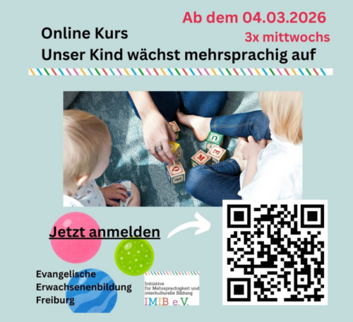 Beschreibung: In Deutschland wächst 1/3 aller Kinder in Familien auf, die mindestens zweisprachig sind. Diese Mehrsprachigkeit ist ein Gewinn. Viele Eltern werden aber unsicher, wenn sich die Sprechfähigkeit der Kinder scheinbar nicht schnell genug entwickelt oder andere Probleme entstehen. Im Kurs erhalten Eltern Informationen über Spracherwerb, lernen praktische Übungen zur Förderung von Mehrsprachigkeit im Alltag und haben die Möglichkeit, sich mit anderen Eltern auszutauschen.